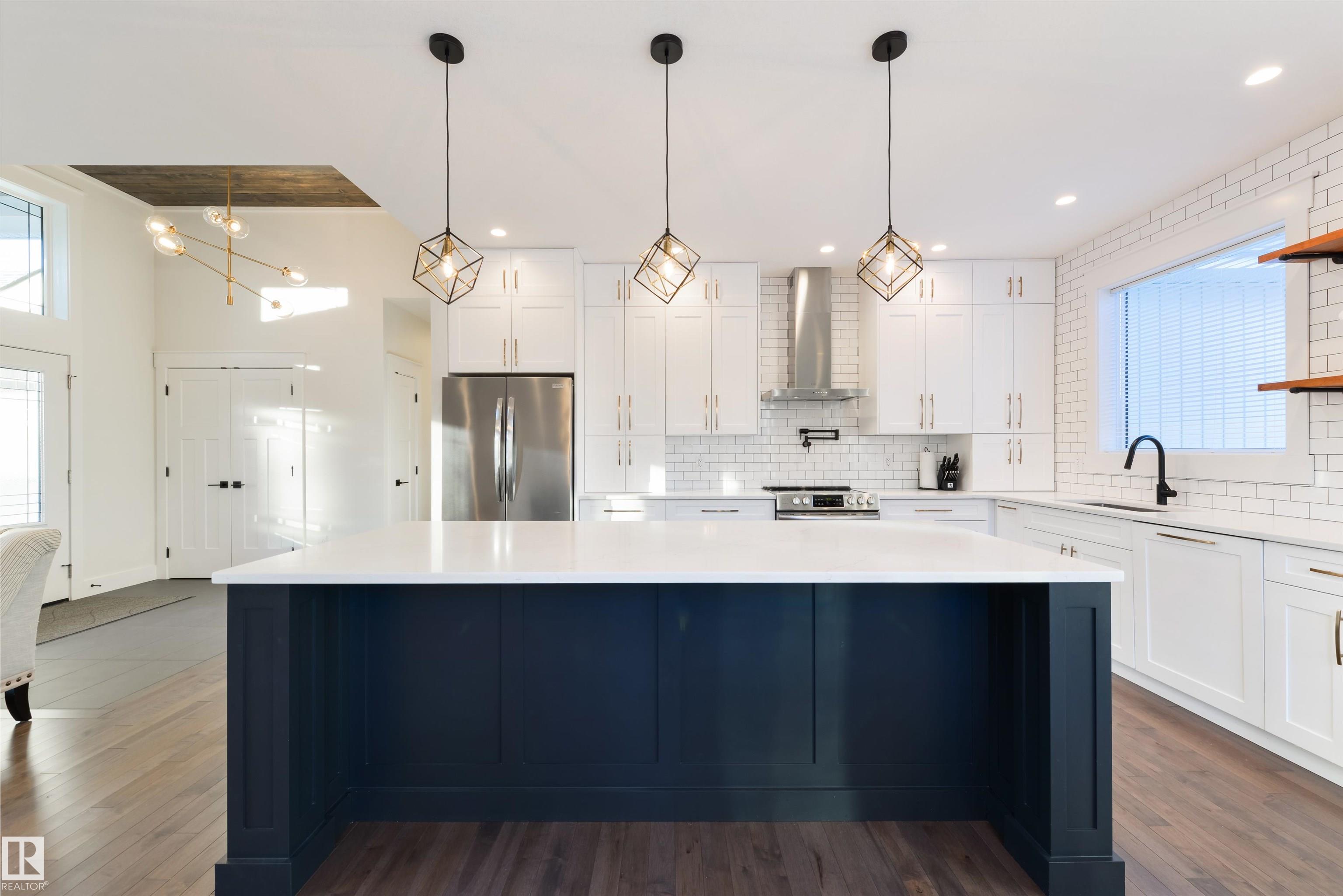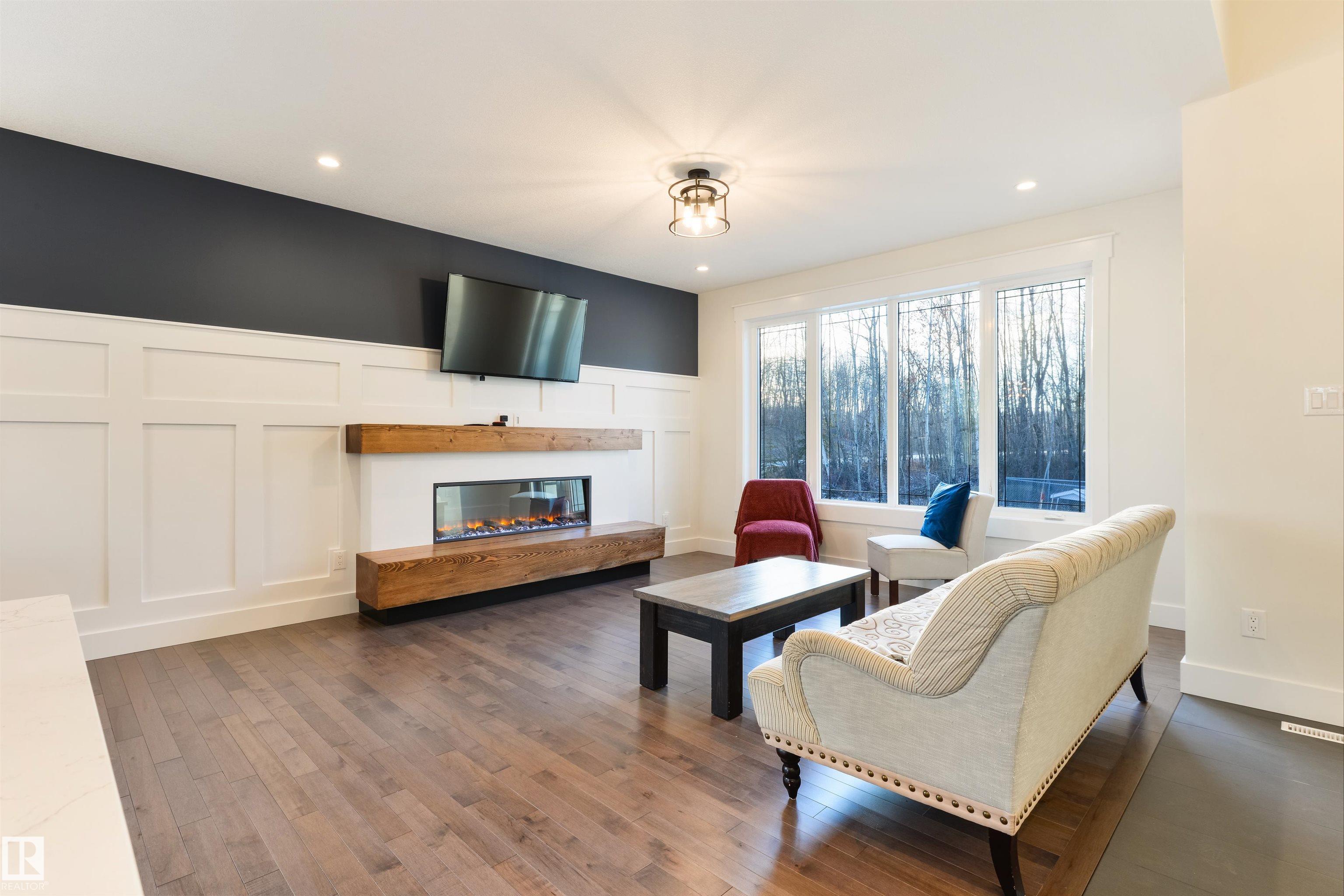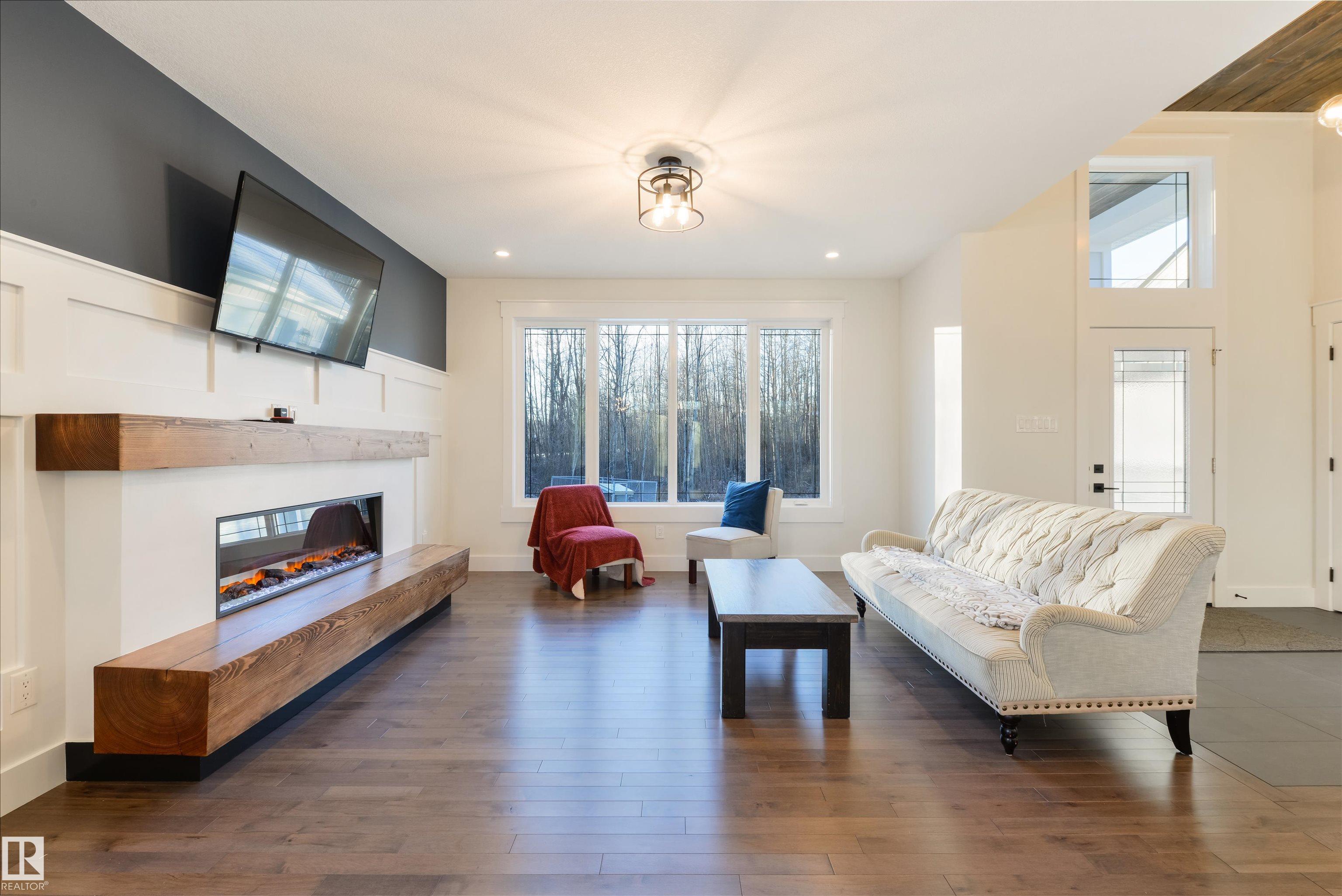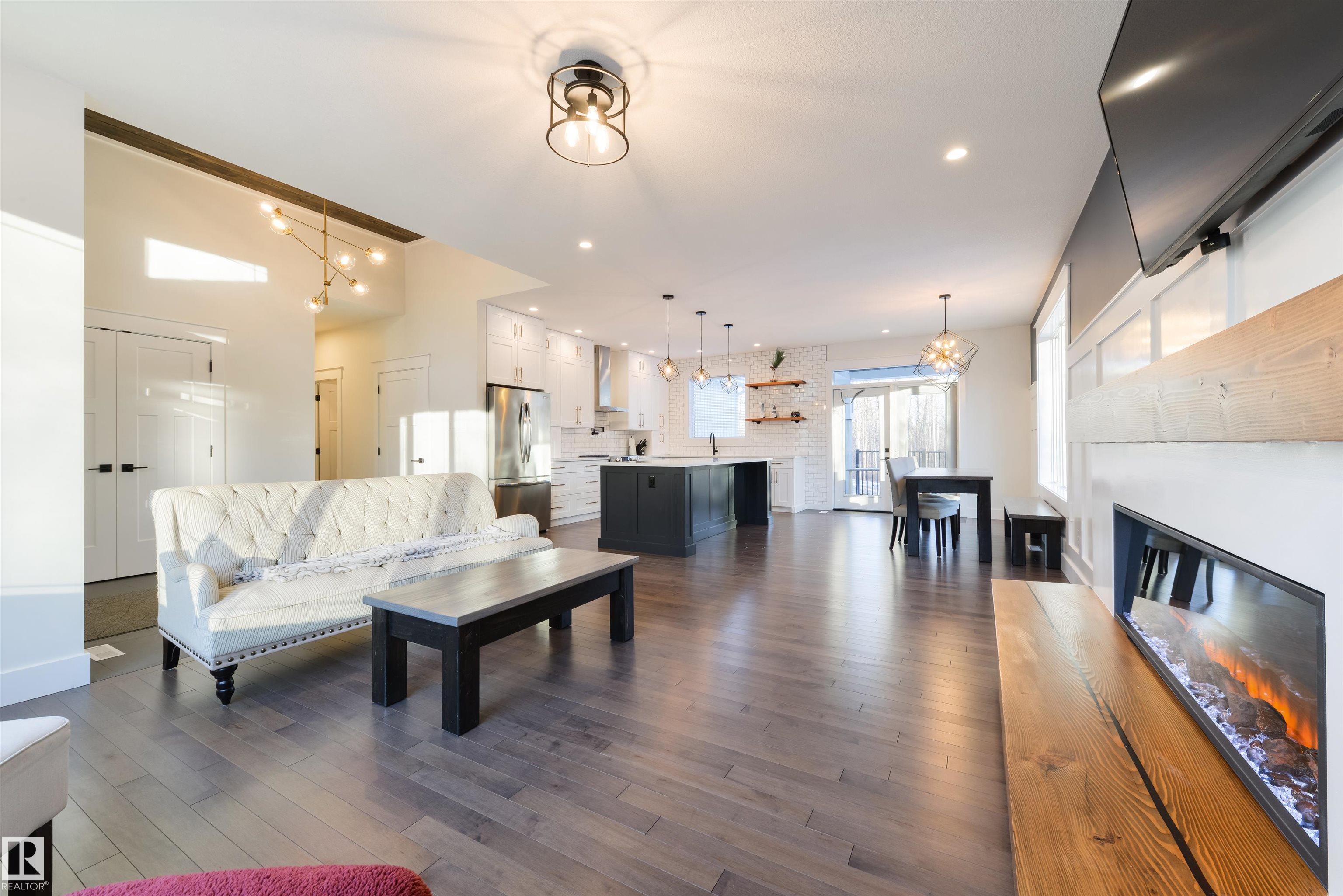 Set on a 3.21 acre treed backdrop, this modern farmhouse blends refined craftsmanship with an elevated floor plan designed with intention. A 12' foyer welcomes you into a bright living space with maple hardwood flooring, 9' ceilings, rich wood accents & detailed wainscotting throughout. The Chef's kitchen features QUARTZ countertops, built-in appliances, full-height soft-close cabinetry, and a centre island, while the living room is anchored by an electric fireplace framed by 111 year-old reclaimed timbers. A large mudroom with main-floor laundry, 4pc bath, & 3 generous-sized bedrooms (including a king-sized owner's suite with walk-in closet and 5-pc ensuite) complete the main floor, while the partially-finished basement awaits your creative touch. Finished with A/C, a partially covered deck, a 33'ž26' heated attached garage, and a 24'ž24' heated SHOP with 10' ceilings, this property delivers the space, functionality, & acreage lifestyle your family deserves. MLS®: E4474489 - Laurentian Heights Bungalow $875,000
