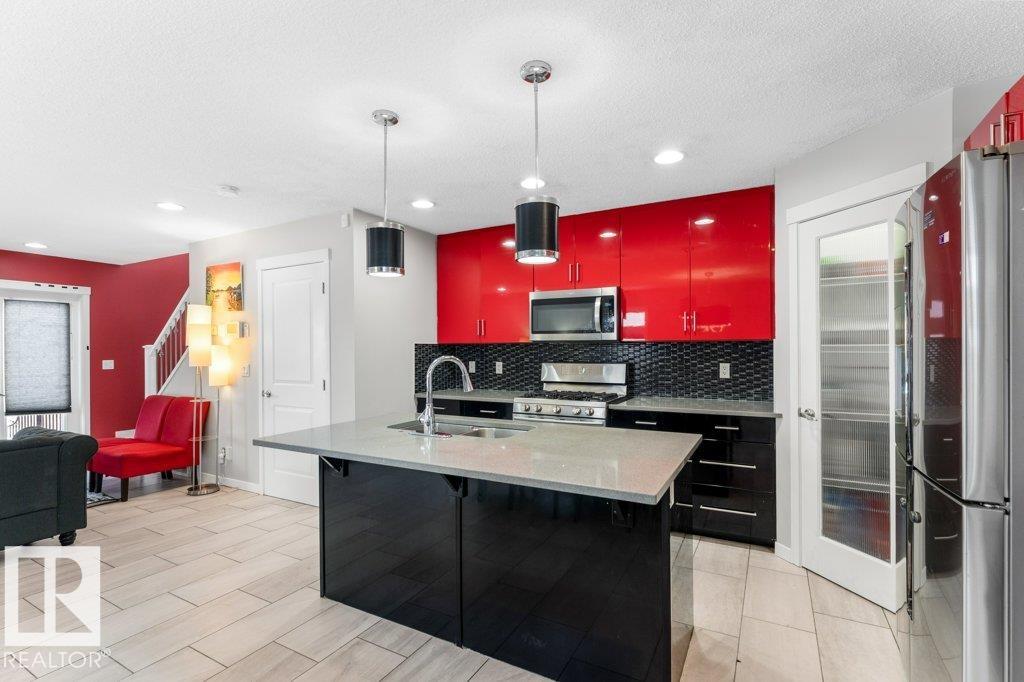 Large pie-shaped lot backing onto walking trails in the established community of Walker! No ongoing construction here -- schools are built, many stores including Walmart and Superstore are steps away, and you'll enjoy nearby ponds with the extensive trail network. Easy access to Ellerslie, Edmonton South Common, and Highway 2 makes commuting simple. The main floor offers a spacious dining area, upgraded tile flooring, quartz countertops, and upgraded kitchen cabinetry. Cook incredible meals with the gas range, deep pot drawers, and corner pantry. The living room is spacious and light-filled, centered around a gas fireplace. Upstairs you'll find a generous primary suite with walk-in closet and 4-piece ensuite, plus two additional bedrooms and a full bath. The unfinished basement is ready for your personal touch. The south-facing garage helps with winter snow melt. The backyard features a wood deck and mix of wood and chain-link fence. A rare lot in a fully developed neighbourhood -- don't miss it! MLS®: E4474236 - Walker 2 Storey $419,900