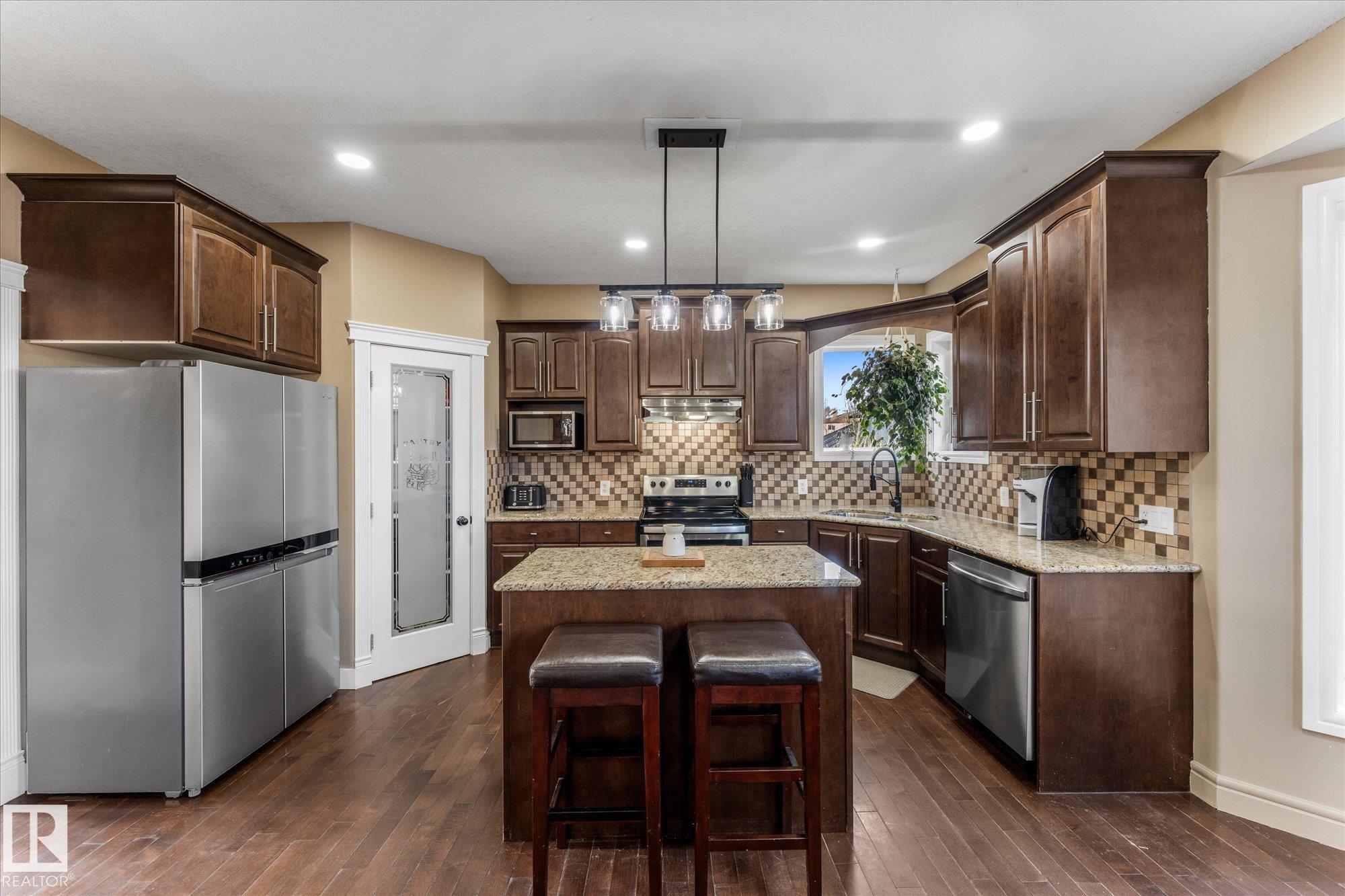 Big, bright, & ACROSS FROM GREEN SPACE, this 2,200+ sq ft family home in sought-after Meadowview Park is set to impress! STUNNING ENTRY features RARE OPEN-TO-ABOVE front living room w/ SOARING CEILINGS & oversized windows. The kitchen offers GRANITE COUNTERTOPS, a walk-in pantry & opens to the family room w/ a refinished GAS F/P. Main floor den, 4-pc. bath & laundry complete the level. Upstairs feat. a GENEROUS PRIMARY w/ walk-in closet & 5-PC. ENSUITE, two additional bedrooms, a 4-pc. bath & a versatile loft. The unfinished basement, partially framed, is ready for development. A NEW 2023 ROOF on both the house & garage adds peace of mind. Other upgrades include interior paint, lighting, ceiling fans, washer & dryer (2025), fridge & recent furnace service/maintenance (Nov 2025). CENTRAL A/C INCLUDED! The double attached garage (approx. 23'x 18') has been re-insulated. Fully fenced, landscaped yard w/ working hot tub (new cover required). CLOSE TO SCHOOLS, SHOPPING & TRAILS. Don't let this one slip away!! MLS®: E4469581 - Meadowview Park_LEDU 2 Storey $525,000