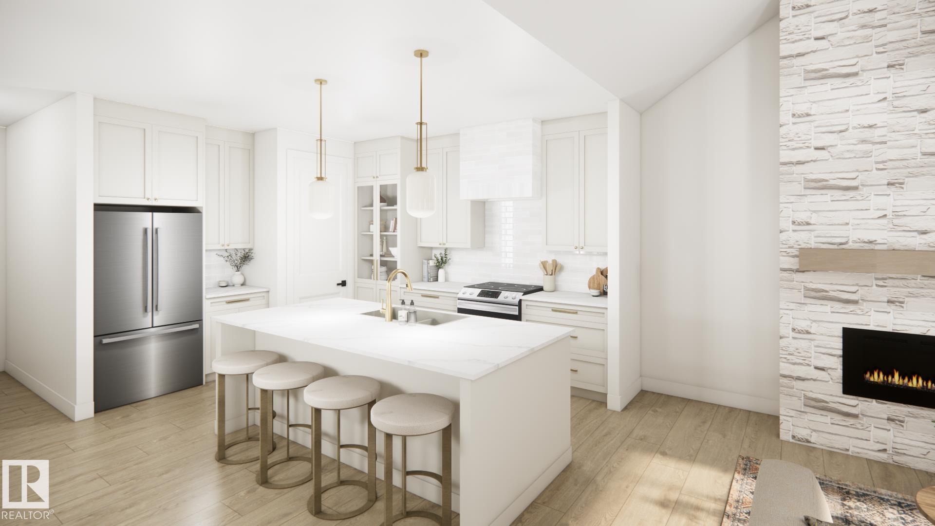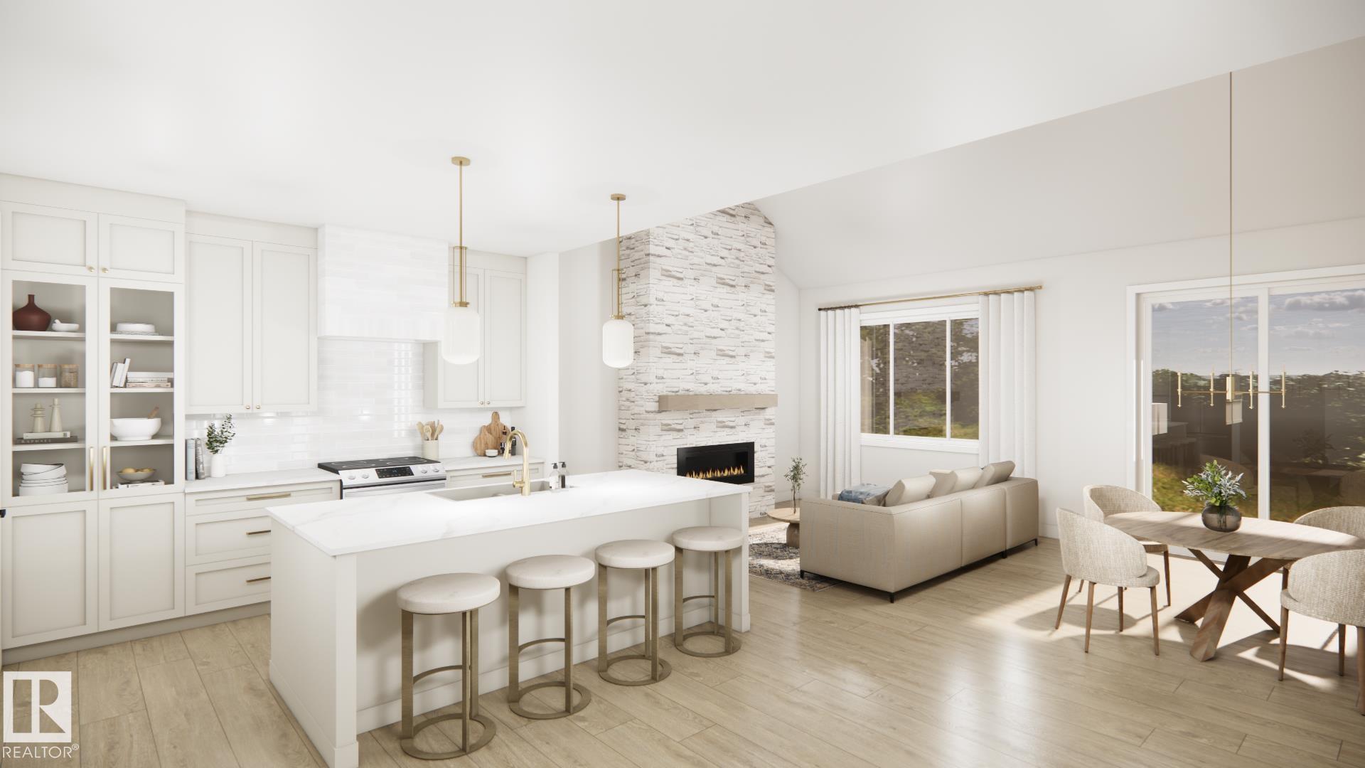 Stunning walkout bungalow backing a pond in Deer Park! HRD Homes presents The Beckett, a unique and RARE floor plan in Spruce Grove feat. over 1,400sqft or living space PLUS a triple heated garage with a 40' RV bay. This home features a bright & airy floor plan incl. vaulted ceilings w/ accented maple beam, an abundance of natural light, large entryway windows and so much more. Premium upgrades incl. vinyl plank flooring, 8ft solid core doors, s/s appliances, glass display doors in the kitchen, beautifully accented champagne bronze fixtures & lighting, gas fireplace w/ full height masonry to the ceiling, vaulted primary bedroom ceiling, his/her sinks w/ custom tiled shower in your 5 pce ensuite, walk-in closet, main floor laundry w/ sink, tankless hot water system, central A/C, hot/cold taps in the garage w/ floor drain, BBQ gas line & custom built ins throughout. This is the perfect place for snowbirds to call their own! *listing photos are design team renderings* MLS®: E4469896 - Deer Park_SPGR Bungalow $925,000