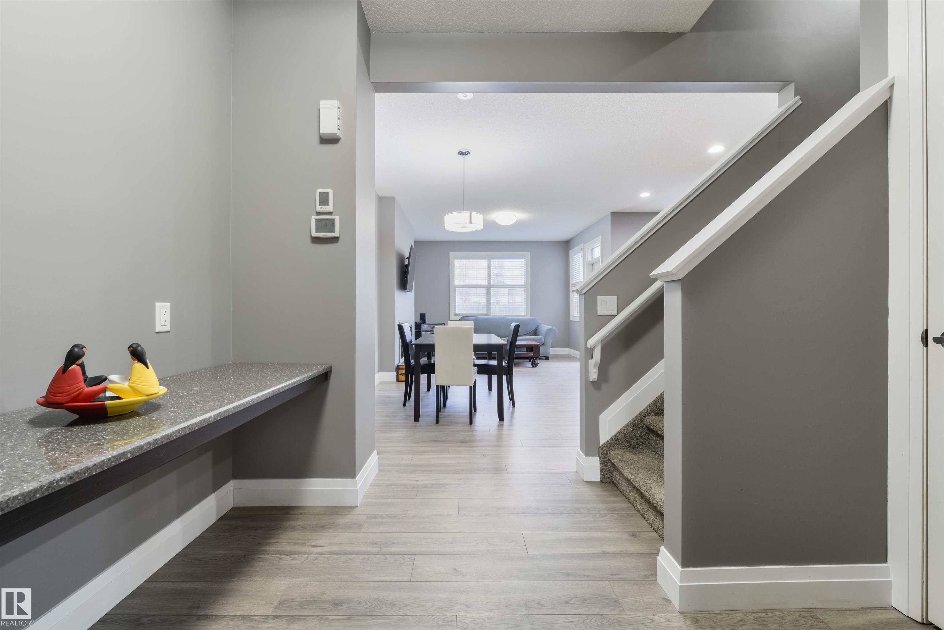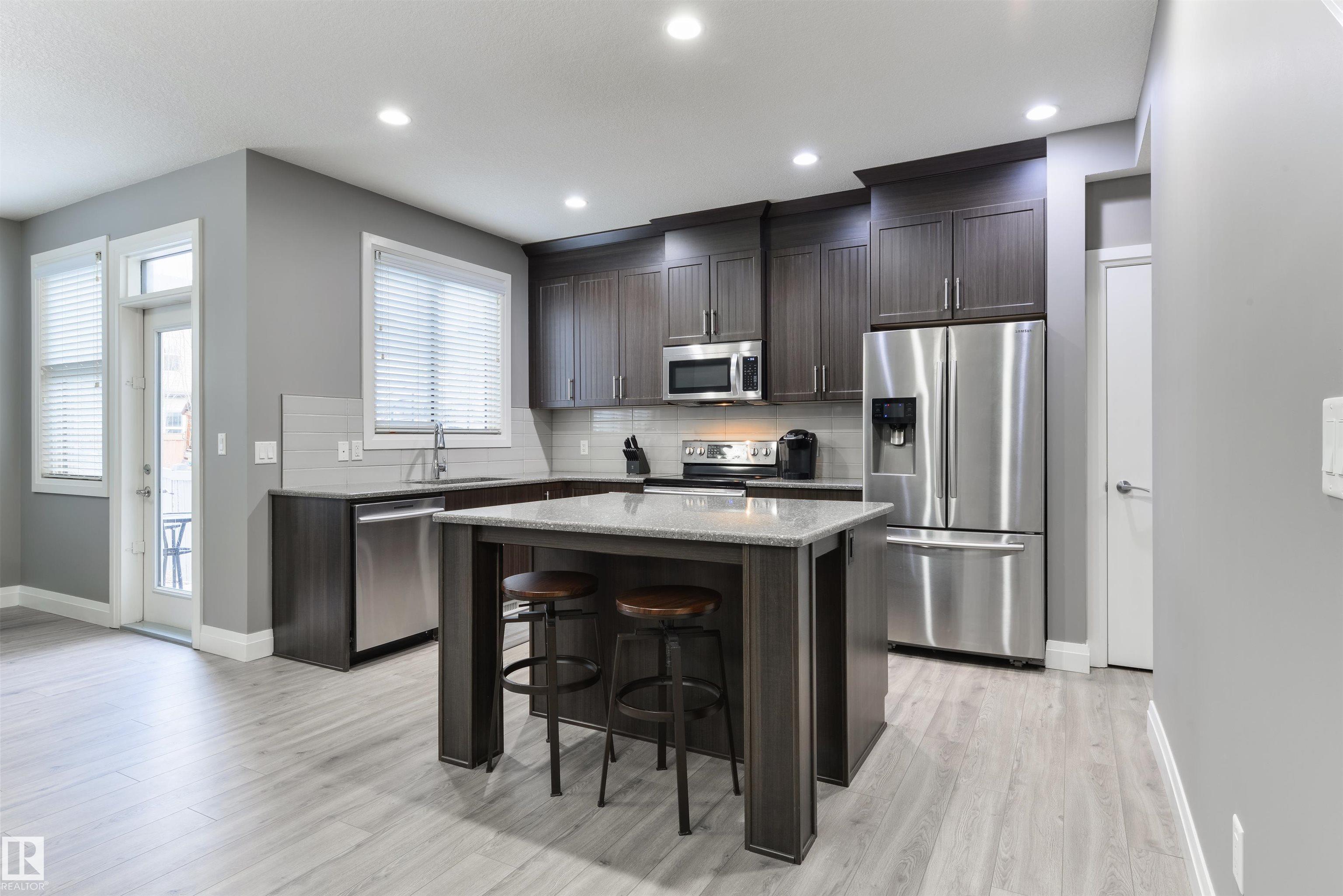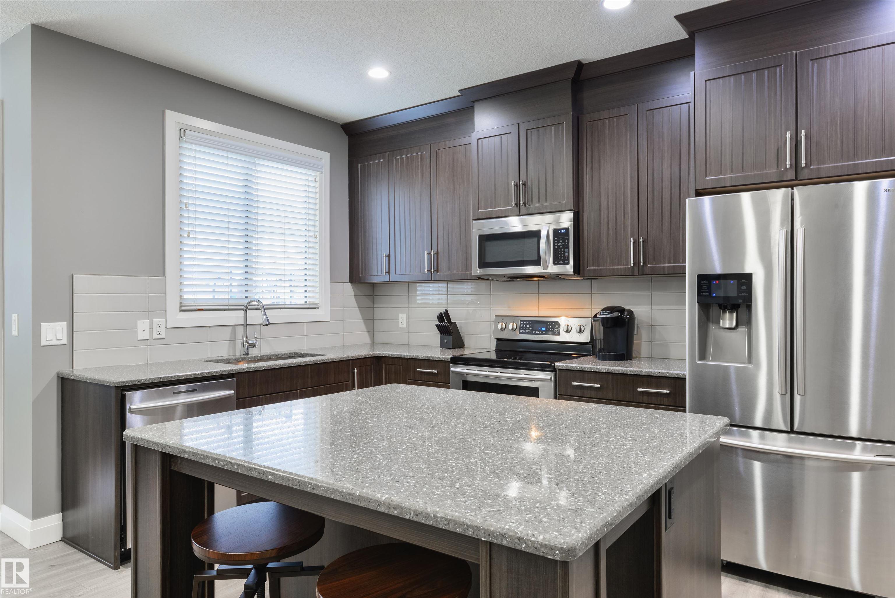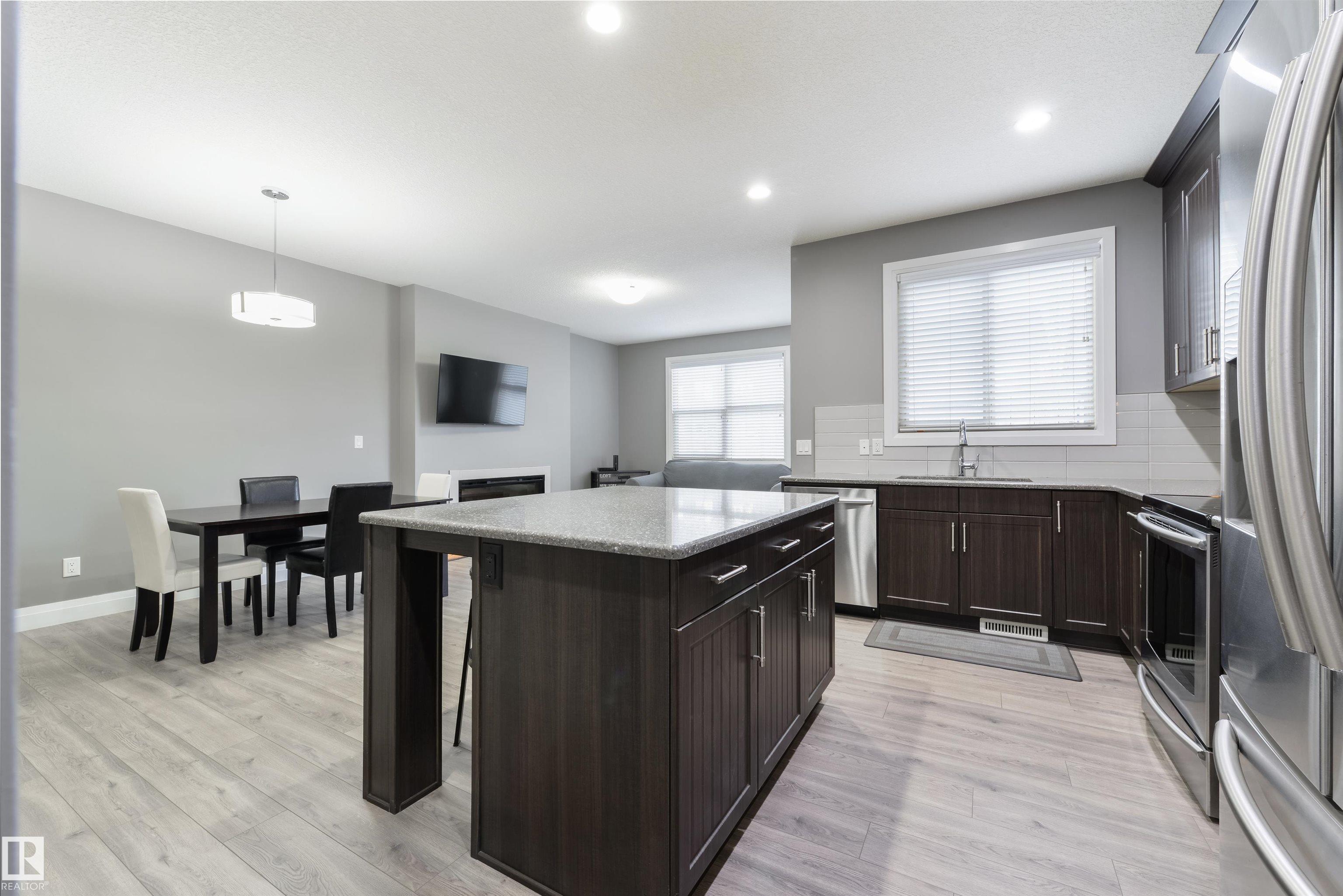Steps from Jubilee Park! Freshly painted, this beautifully crafted home in Greenbury features central A/C, laminate flooring, an open floor plan, modern kitchen with floor-to-ceiling cabinetry, Quartz countertops, stainless appliances, center island, & a separate dinette, California knock-down 9' ceilings, cozy electric fireplace in the living room, top-floor laundry, and 3 sizeable bedrooms including a king-sized owner's suite with walk-in closet & 4-pc ensuite, just to name a few. This home is fully landscaped & fenced, and is complete with an exterior deck, stone patio, gas BBQ hook-up, oversized single-attached garage, and desirable WEST-FACING view. Located in one of Spruce Grove's most beloved subdivisions, this home is walking distance to schools, playgrounds, & trails, and is move-in ready! MLS®: E4477093 - Greenbury 2 Storey $450,000