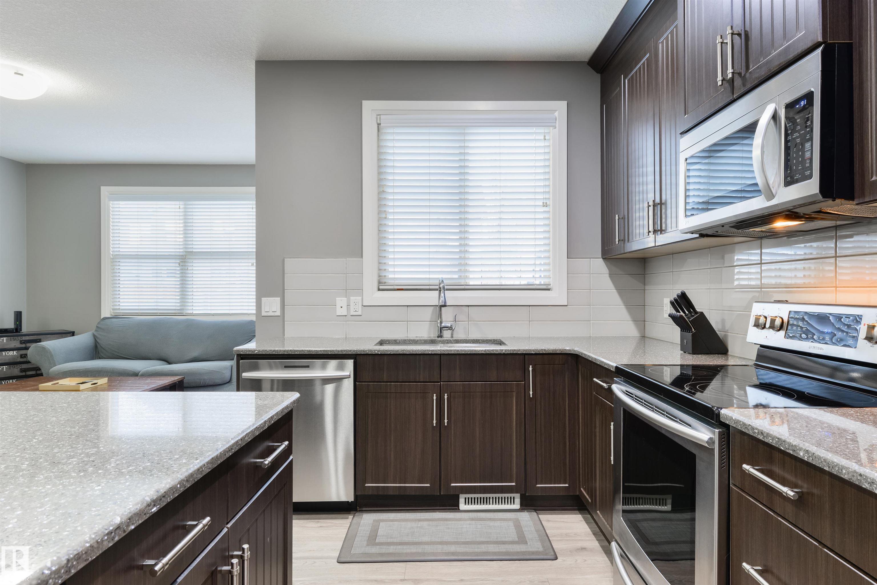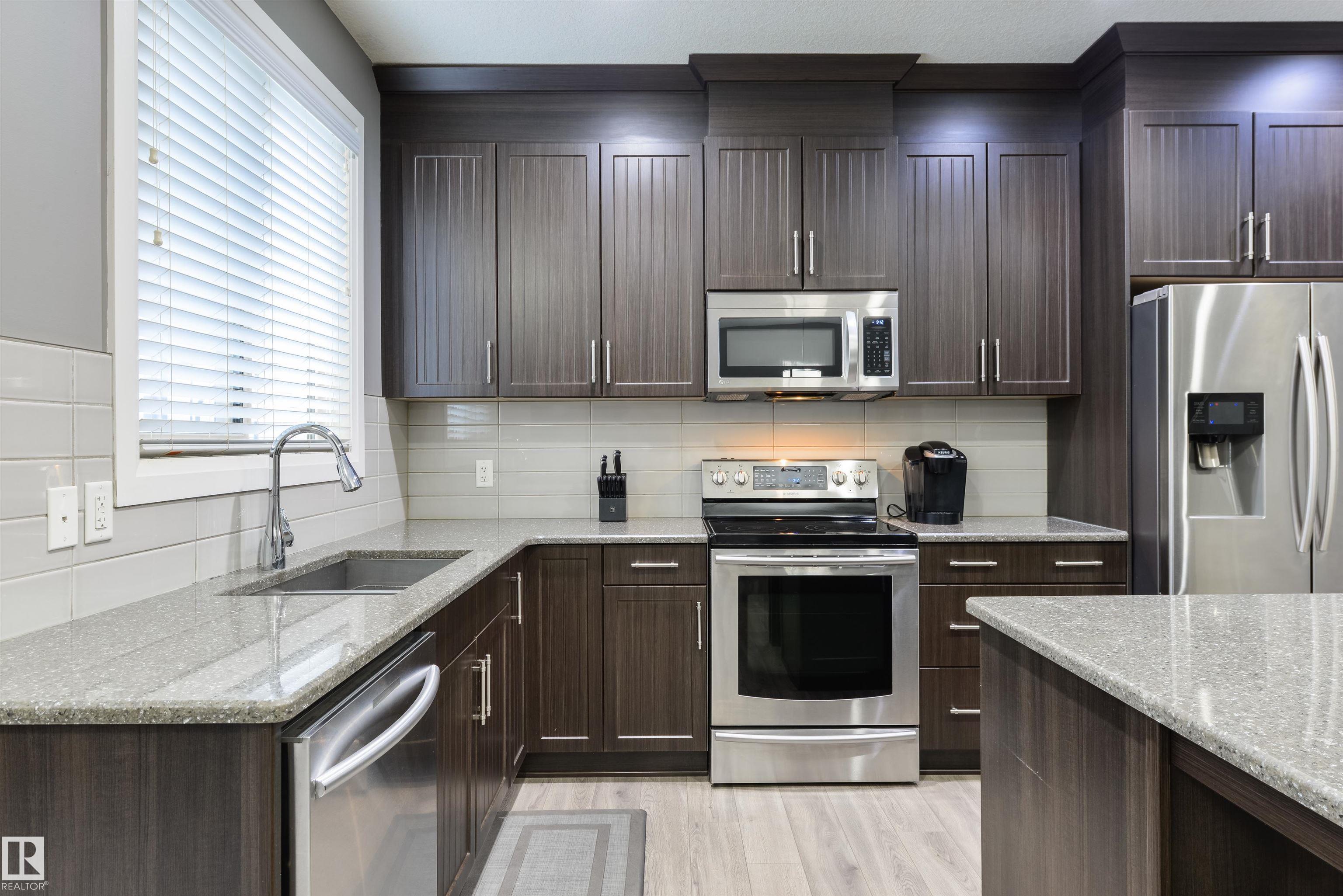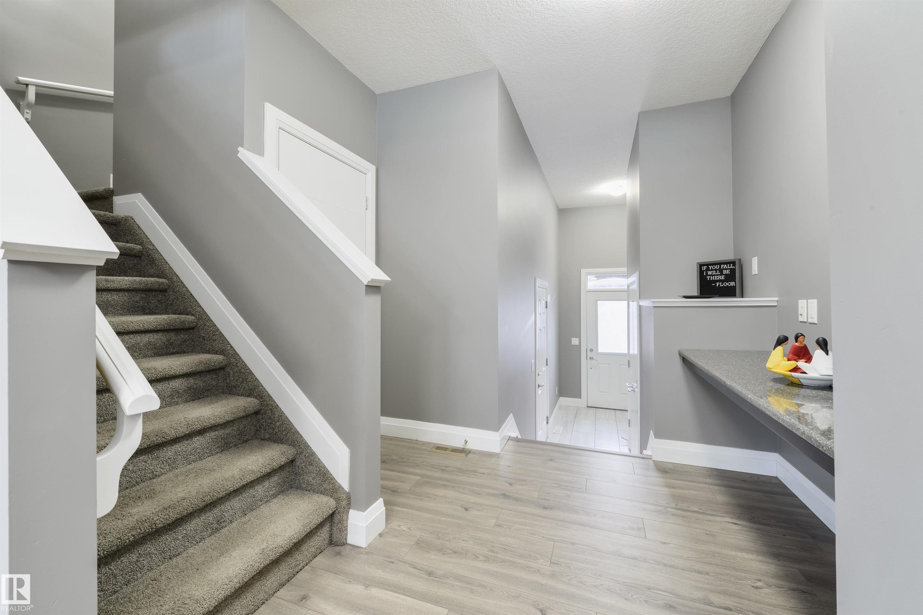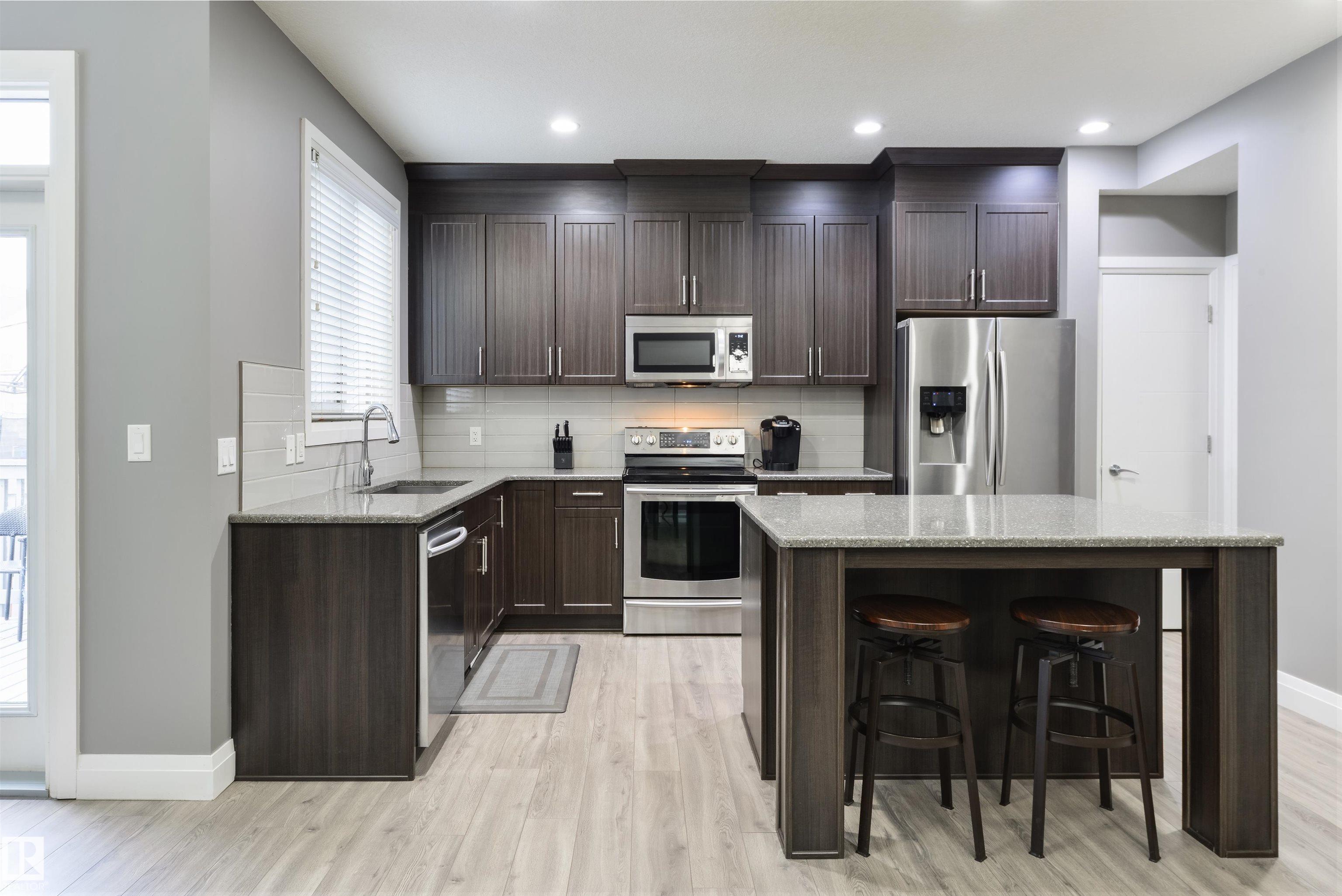 Steps from Jubilee Park! Freshly painted, this beautifully crafted home in Greenbury features central A/C, laminate flooring, an open floor plan, modern kitchen with floor-to-ceiling cabinetry, Quartz countertops, stainless appliances, center island, & a separate dinette, California knock-down 9' ceilings, cozy electric fireplace in the living room, top-floor laundry, and 3 sizeable bedrooms including a king-sized owner's suite with walk-in closet & 4-pc ensuite, just to name a few. This home is fully landscaped & fenced, and is complete with an exterior deck, stone patio, gas BBQ hook-up, oversized single-attached garage, and desirable WEST-FACING view. Located in one of Spruce Grove's most beloved subdivisions, this home is walking distance to schools, playgrounds, & trails, and is move-in ready! MLS®: E4477093 - Greenbury 2 Storey $450,000