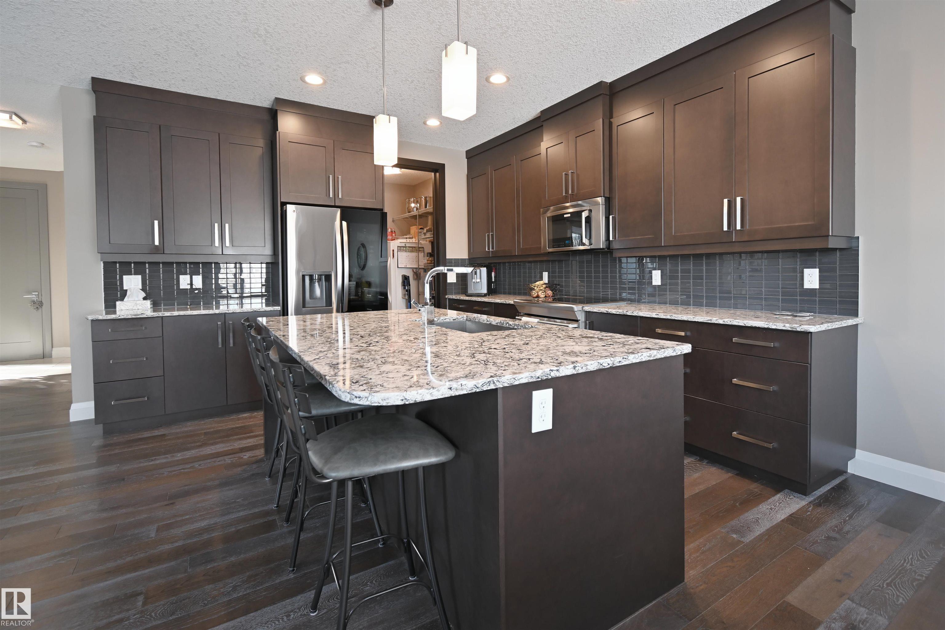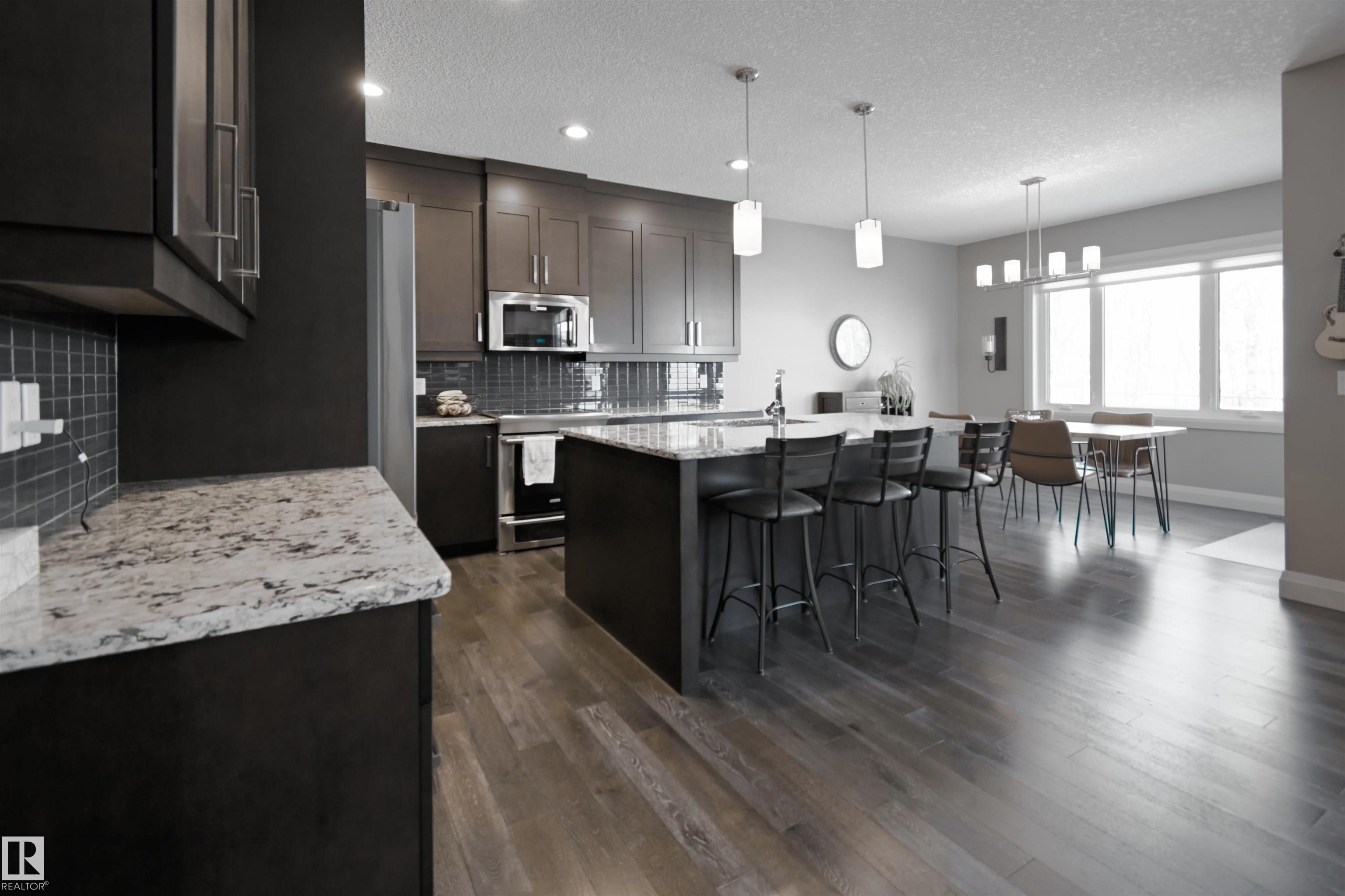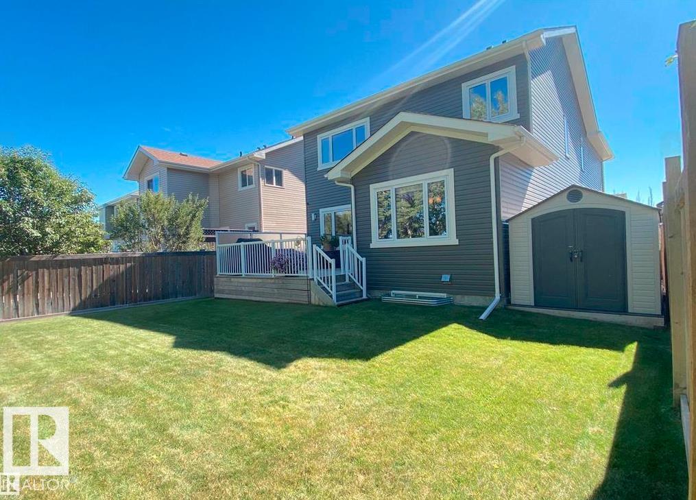 Checking Every Box, this 4-bed, 4-Bath 2-Storey with finished basement is a Must See! Soaring ceilings and a substantial staircase welcome you into the home. The kitchen features quartz counters, extended cabinets, centre island with seating, and walk-through pantry. The living room has a gas fireplace & enjoys a treed view. The ample dining room leads to the deck and backyard. A mud room with custom built-ins accesses the 24x23 heated and finished garage which has Hot and Cold water. A den/flex room and 2-pc bath complete the main level. Upstairs, the spacious primary suite features a 5-pc ensuite with Kohler massage tub & double sinks, as well as a walk-in closet. The upper level includes two morel beds, laundry, 4-pc bath and large bonus room, perfect for watching movies with the family. The finished basement offers a family/rec room, exercise nook, 4th bedroom and 3-pc bath. The beautifully landscaped yard with in-ground sprinklers backs trees and a park. Situated in Heatherglen, close to the Tri. MLS®: E4479583 - Heatherglen 2 Storey $628,900