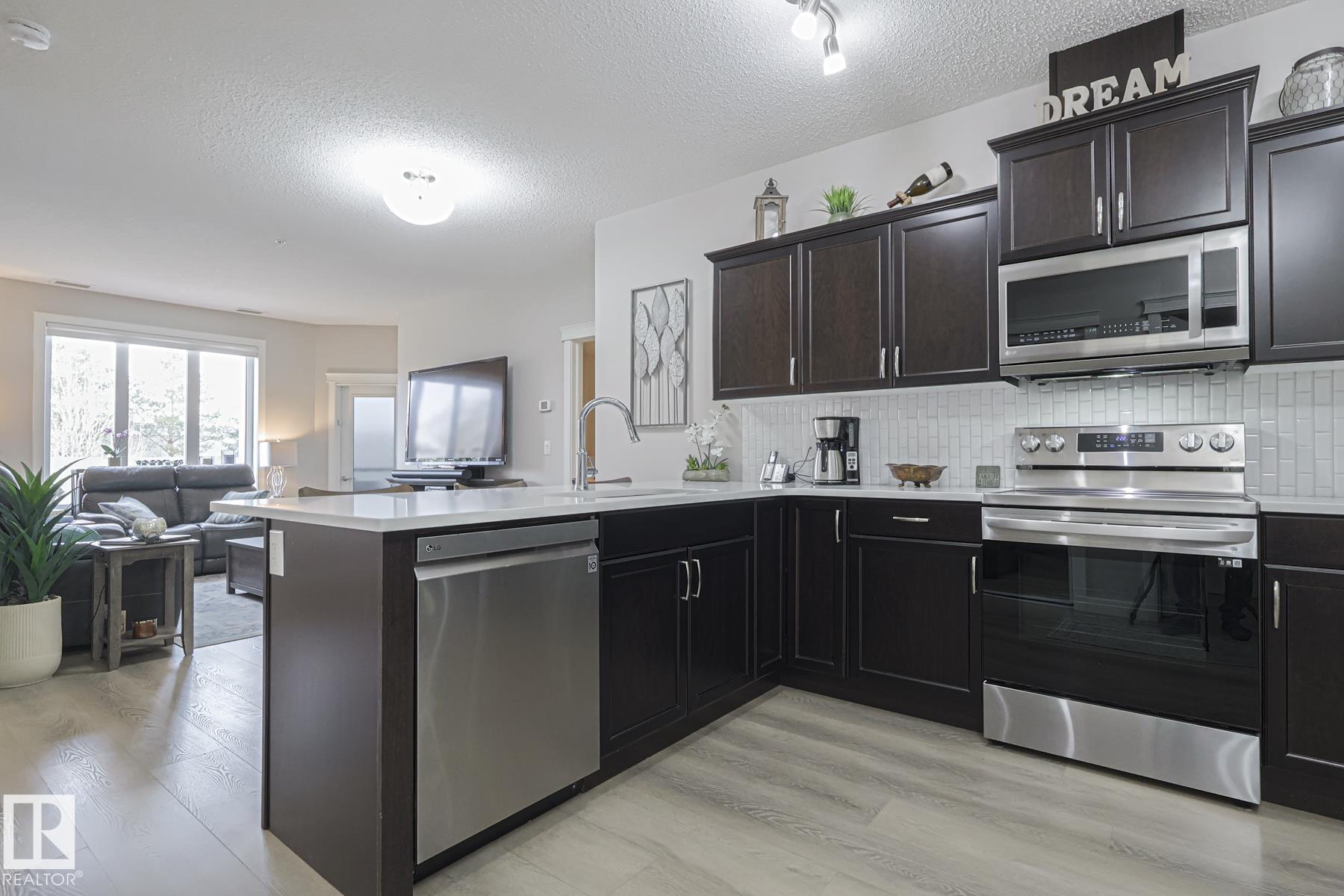 Element Lofts & Flats! Elegance abounds in this renovated, immaculate condominium! Offering a bright & open floorplan with peninsula kitchen, living room, primary bedroom... MLS®: E4473475 - Summerwood Single Level Apartment $314,900