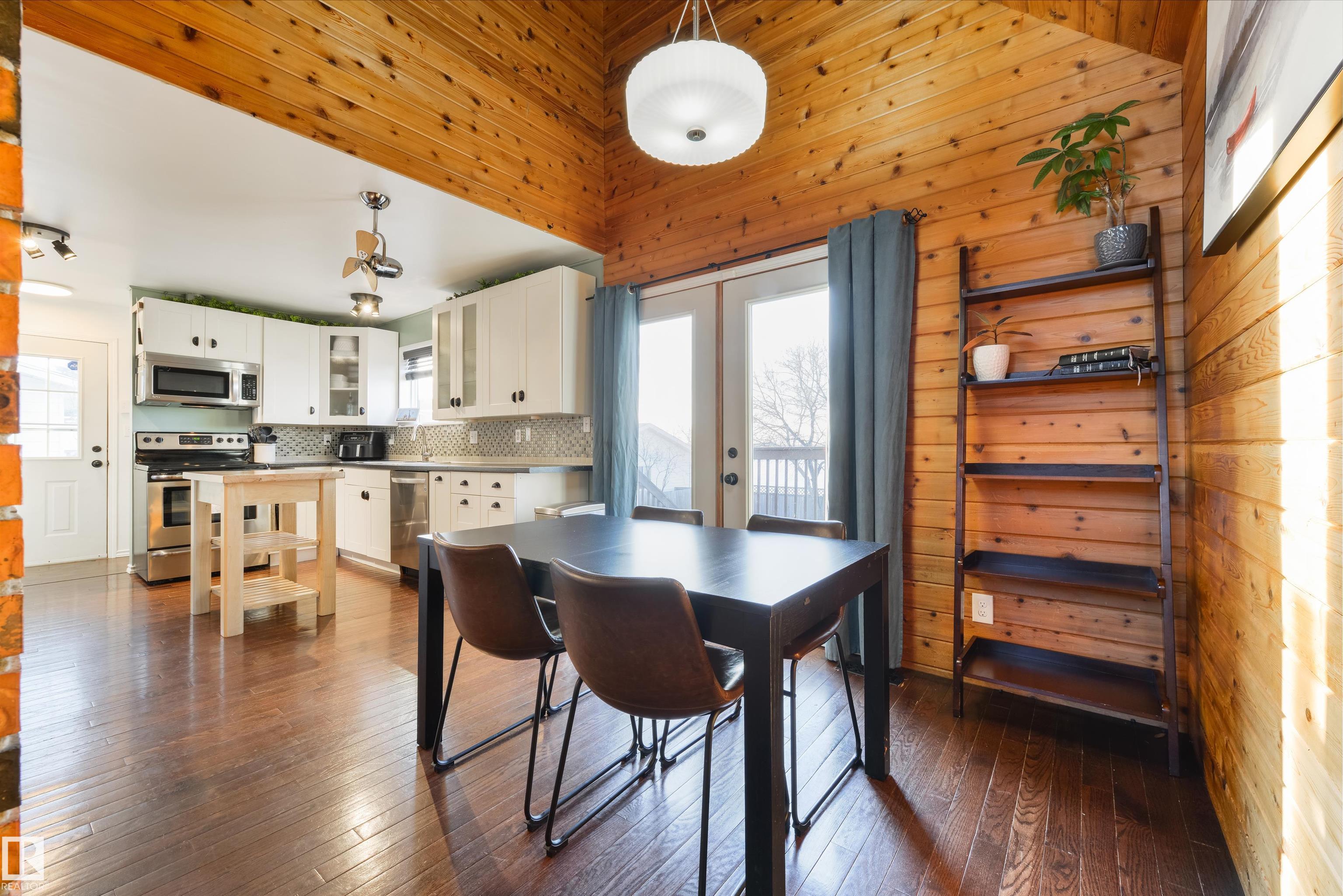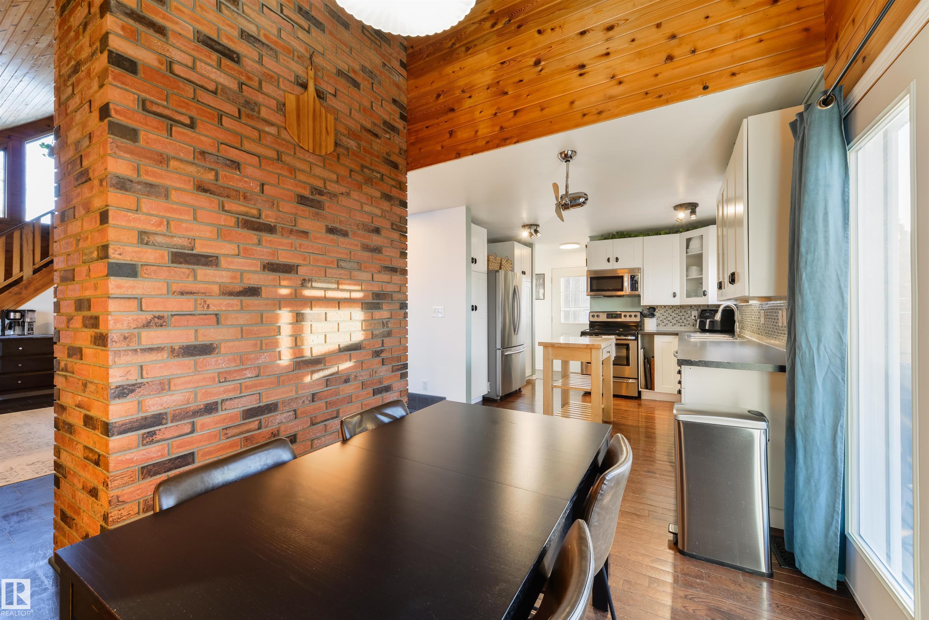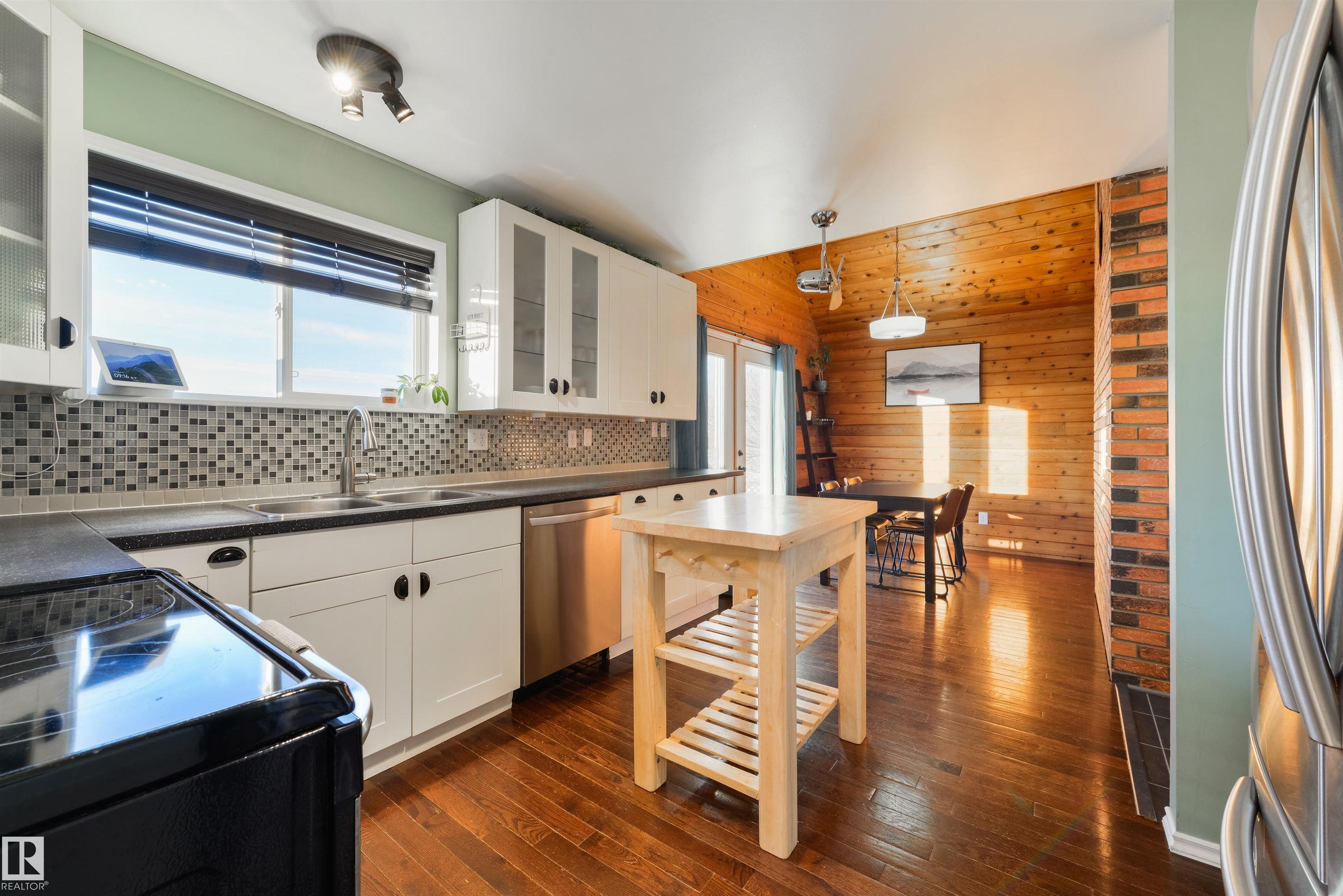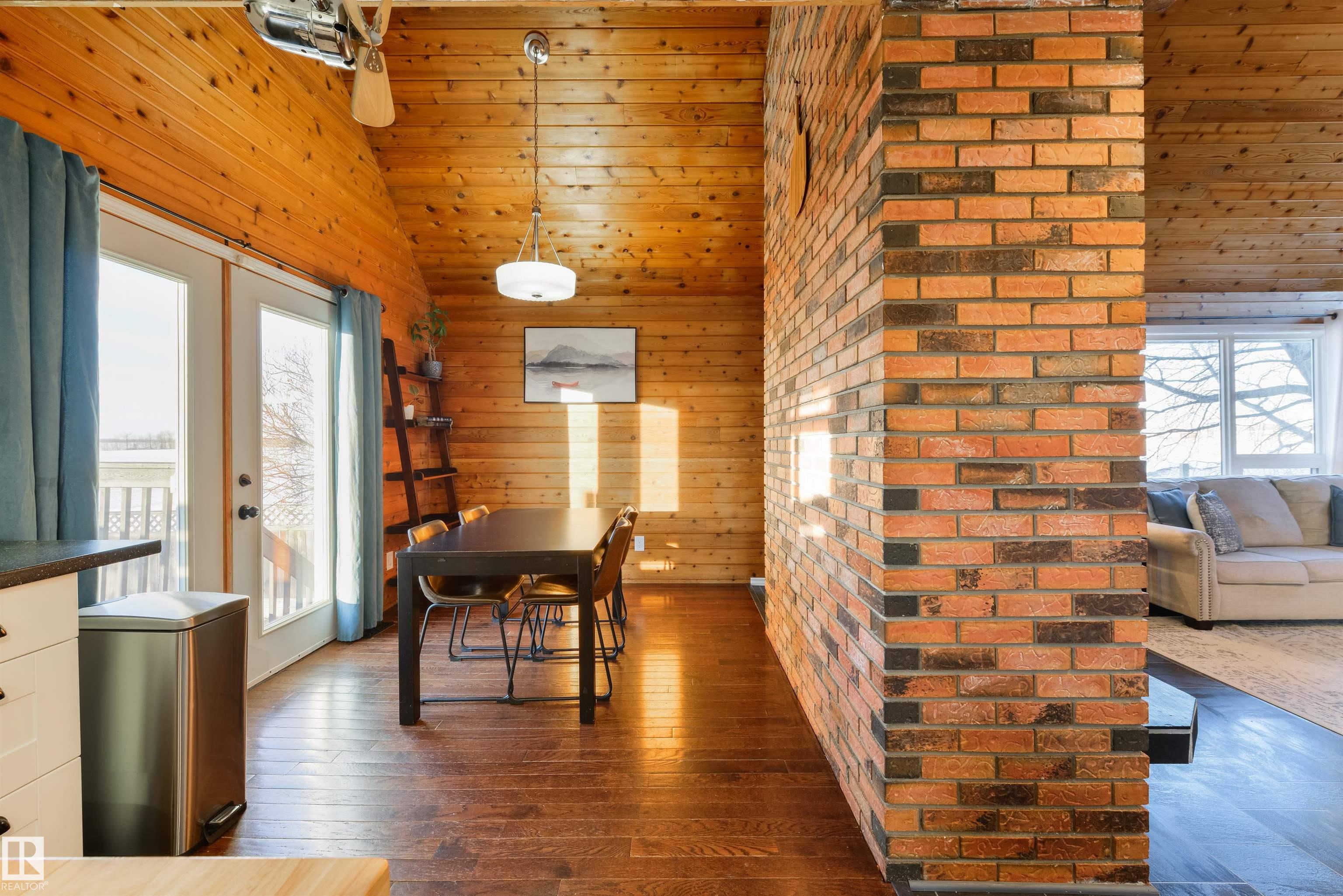 A rare mid-century modern retreat where soaring wood ceilings, subtle brick accents, and wide-open views create something truly unforgettable. This fully-finished home has been incredibly well-maintained and offers space, comfort, and standout architectural character. The main floor is bright and inviting with vaulted ceilings, expansive windows, and a full-height brick-surround gas fireplace anchoring the living area. The layout flows seamlessly into the dining space and kitchen, perfect for everyday living and entertaining. Upstairs, the loft-style design adds warmth and personality, while the finished basement provides flexible space for a family room and office. Complete with main-floor laundry, dual furnaces, central A/C, and a desirable SOUTH-FACING yard, this property is partially-surrounded by open fields and offers exceptional privacy and peacefulness - an extraordinary opportunity unlike any other. MLS®: E4472690 - Legal 2 Storey $367,000